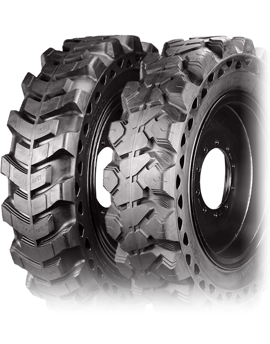 Ideal for rough-duty applications found in construction, demolition, scrap metal, and other industrial environments, we provide solid tires for skid steers, loaders, telehandlers, excavators and custom applications. We also offer non-marking telehandler tires.