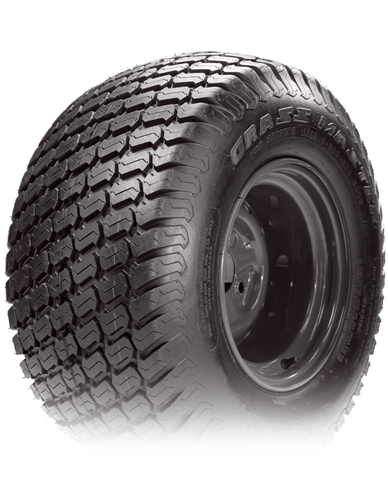 Ideal for zero-turn, ride-on, and stand-on mowers, Big Bite features a large footprint that puts more rubber on the ground for extra traction and stability. Angled tread blocks and open shoulders boost traction, while an optimized design lowers rolling resistance to protect turf.