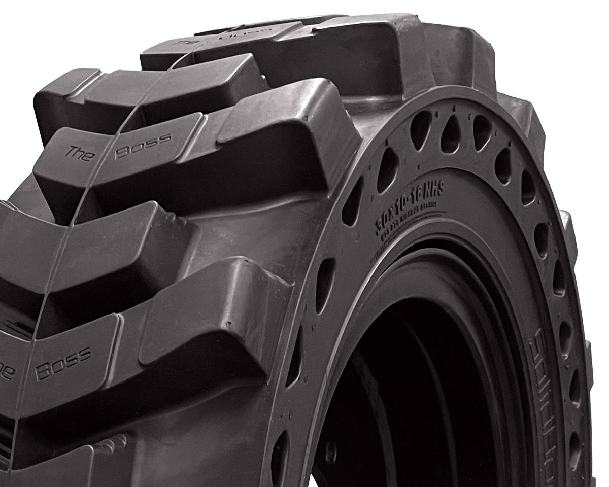 Featuring aggressive directional treads, WORKBOSS® D230 tire assemblies provide superior handling in wet and muddy conditions. The V-shaped treads push water and mud away from the center rib, and step-downs within the treads make the tires self cleaning. Constructed of exclusive SOLIDBOSS® rubber compounds, the tires resist chunking and slicing damage, helping ensure longer life.