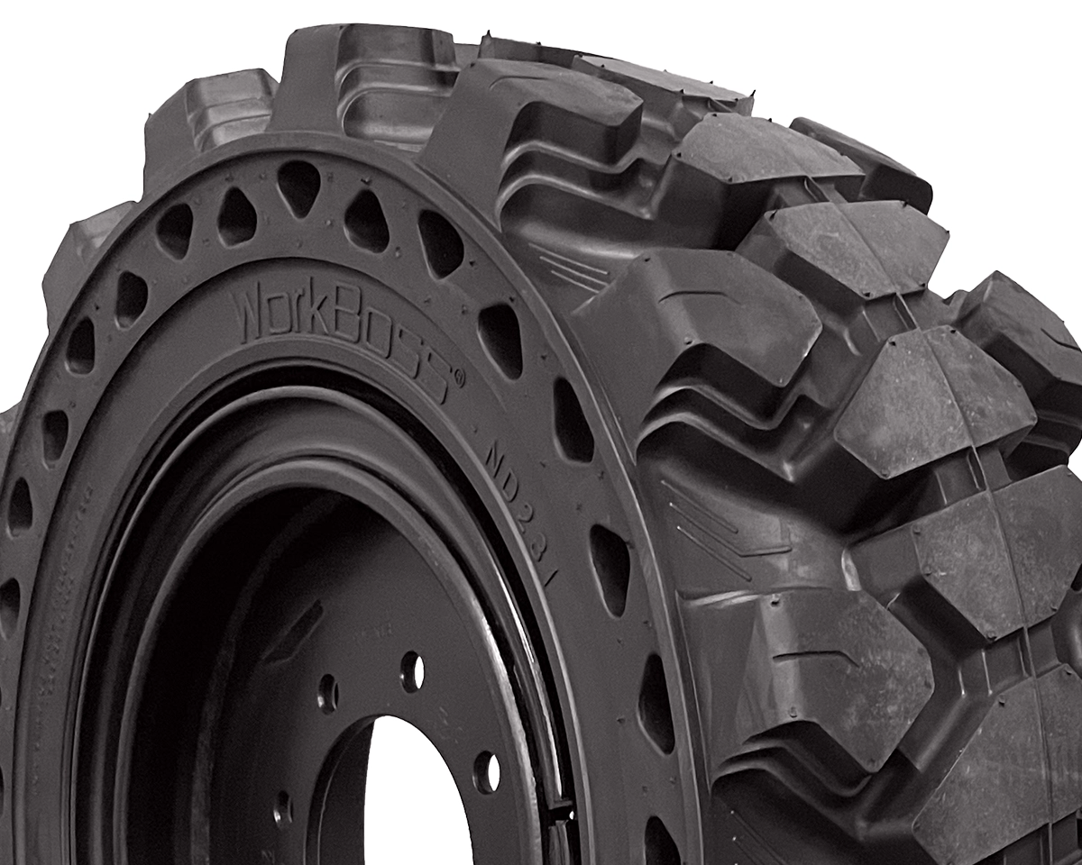 WORKBOSS® ND231 tire assemblies feature an aggressive non-directional tread pattern that optimizes traction in both forward and reverse. Furthermore, selection is simplified when compared with traditional directional tire assemblies as the same unit is used for left- or right-hand installation, resulting in fewer errors when ordering and mounting. This also requires less inventory for the dealer to stock. Constructed of exclusive SOLIDBOSS® rubber compounds, the tires resist chunking and slicing damage, helping ensure longer life.