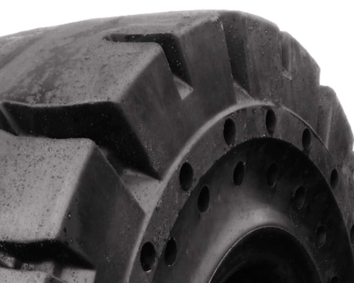 SOLIDBOSS® wheel loader aperture tires are designed with the operator in mind, reducing downtime from flats while improving stability and handling. These tires last longer than standard pneumatic tires which, in turn, reduces life cycle cost. Plus, they ensure a smooth “bounce free” ride on rough terrain, compliments of cushioning apertures that absorb shock. Designed especially for wheel loaders, SOLIDBOSS tires are preferred by leading OEMs.