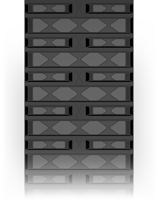 TRACKBOSS E5-Tread Rubber Tracks provide a multi-bar tread pattern for a combination of the smooth ride found with a traditional straight-bar design and the higher traction of designs with multiple connecting points. The E5 tread is a great solution for minimizing ground damage on delicate surfaces, like turf, while maintaining traction.